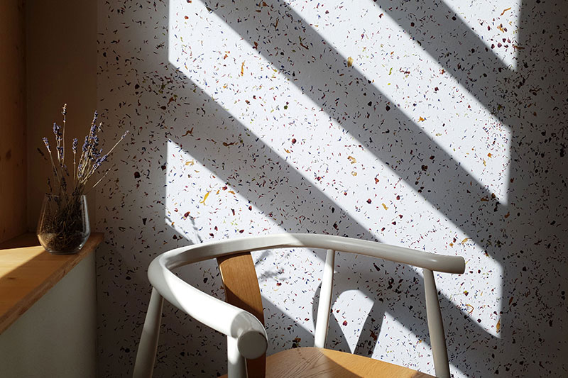 Außerdem nutzen wir Naturtapeten wie zum Beispiel Organoid, die Ihre Räume zum Duften bringen. Dies gilt auch für eine schmuckhafte Ergänzung zu Kalk oder Anstrichen.
